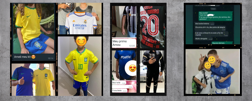 E para tornar essa experiência ainda mais especial, agora, vocês poderão ver fotos desses depoimentos em nosso site. São momentos de pura satisfação e orgulho, compartilhados por nossos clientes que confiaram em nós para vestir as cores do seu time do coração ou presentear as pessoas que mais amam.